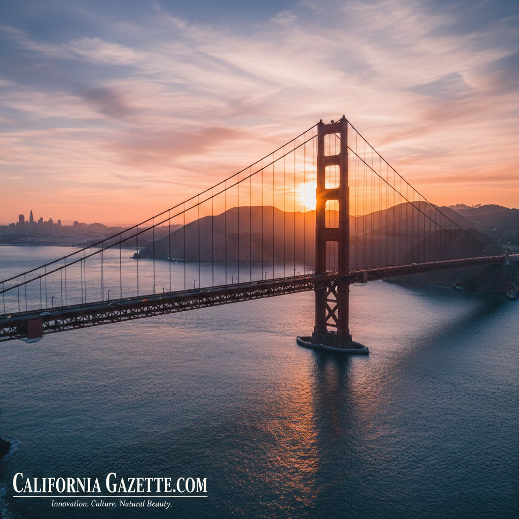 The iconic Golden Gate Bridge at sunset symbolizes California’s blend of innovation, culture, and natural beauty. CaliforniaGazette.com aspires to cover the full spectrum of California life with the same balance of awe and insight.