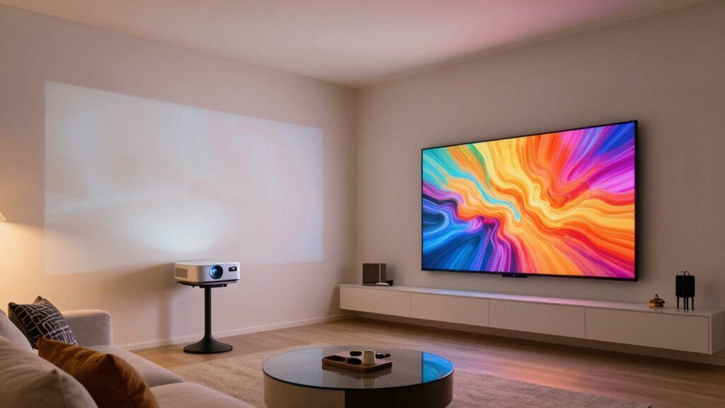 Ultimately, your decision hinges on your room size, lighting conditions, audio preferences, and how much effort you’re willing to put into installation and maintenance. Understanding these factors helps you choose the best device to elevate your living room experience.