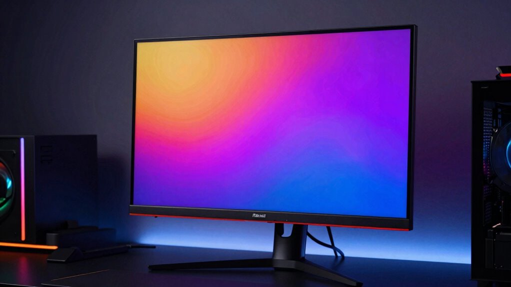 You should opt for a screen size between 24 to 27 inches for gaming, balancing immersion and comfort. This size allows for sharp images with good color accuracy, enhancing your gaming experience. An ergonomic design is also essential, so choose a monitor with adjustable height, tilt, and swivel features to reduce strain during long sessions. This setup guarantees you stay comfortable and fully immersed in your gameplay.