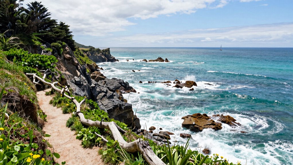 Living near the California coast means waking up to the sound of crashing waves and stunning ocean views every day. You’ll enjoy vibrant sunsets that fill the sky with orange, pink, and purple hues, creating a peaceful escape from daily stress. The scenery and wildlife—seagulls, dolphins, and seals—bring a sense of harmony and calm. This environment encourages mindfulness and a deep connection with nature. Interested in discovering how this lifestyle shapes your well-being? Keep exploring to learn more.