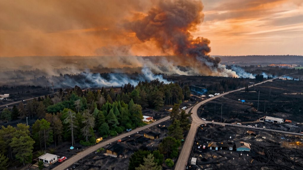 Certain communities, especially vulnerable neighborhoods near wildland-urban interfaces, are more at risk during wildfire season. You’ll notice these areas often lack community resilience, which makes them less prepared for fires. Factors like limited access to resources, dense vegetation, and inadequate fire prevention measures increase their vulnerability. As a resident, you should stay informed about these risks and support initiatives that boost community resilience in these high-risk neighborhoods.