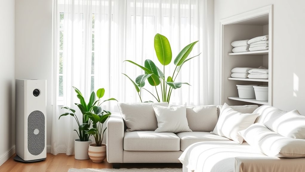 You might wonder if natural remedies can truly make a difference. The answer is yes—simple strategies like adding houseplants to boost air quality, using natural cleaning solutions such as vinegar and baking soda, and keeping a regular schedule of washing bedding in hot water can help reduce allergens. These methods work quietly but effectively, creating a healthier environment without harsh chemicals, so you breathe easier every day.