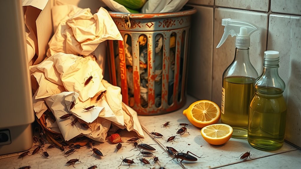 If you have a cockroach problem, try mixing borax and sugar as a bait or use baking soda and boric acid to attract and kill them. Diatomaceous earth is a natural dehydrator, and vinegar with dish soap can provide quick results. For long-term control, apply boric acid pellets, set traps, vacuum regularly, and seal entry points. Natural repellents like essential oils can help keep roaches away. Keep watching to discover more effective home remedies.