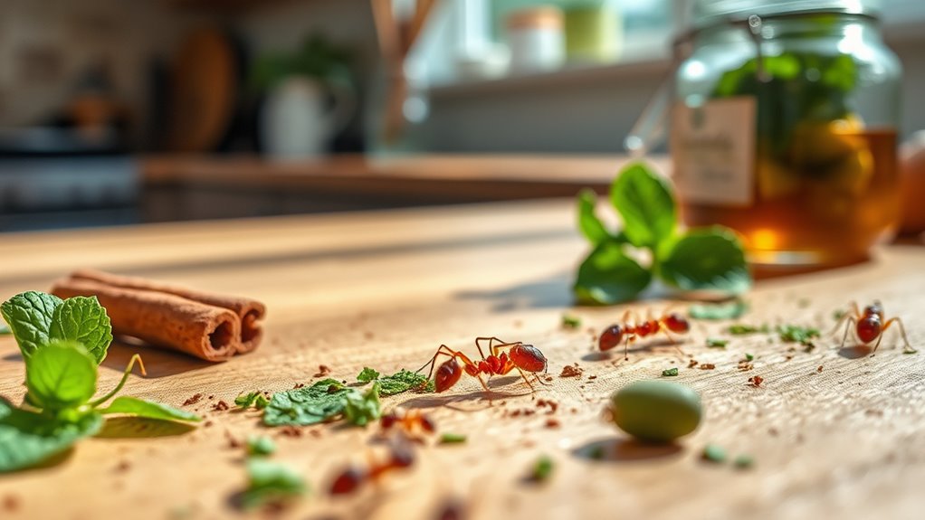 Natural repellents are an effective way to keep ants at bay without resorting to harsh chemicals. You can use simple household items like vinegar and lemon juice to disrupt ant trails and eliminate their scent markers. Spraying a vinegar solution along entry points confuses ants and deters new invaders. Lemon juice works similarly by breaking down their scent trails, making it harder for them to navigate. Spices like cinnamon and pepper irritate ants’ smell receptors, discouraging them from crossing treated areas. Essential oils such as clove, tea tree, lemon eucalyptus, and cinnamon leaf release strong scents that repel ants naturally. Applying these oils via sprays or saturated cotton balls in problem areas creates an effective barrier. These natural repellents are safe, inexpensive, and easy to incorporate into your pest control routine. Vetted Additionally, understanding the passive voice detection can help you improve your writing clarity and engagement. Incorporating knowledge about home remedies can further enhance your DIY pest control efforts by using readily available ingredients. For example, employing natural pest control strategies reduces chemical exposure and promotes a healthier living environment. Using scientific research on natural repellents ensures you select the most effective ingredients for your needs.