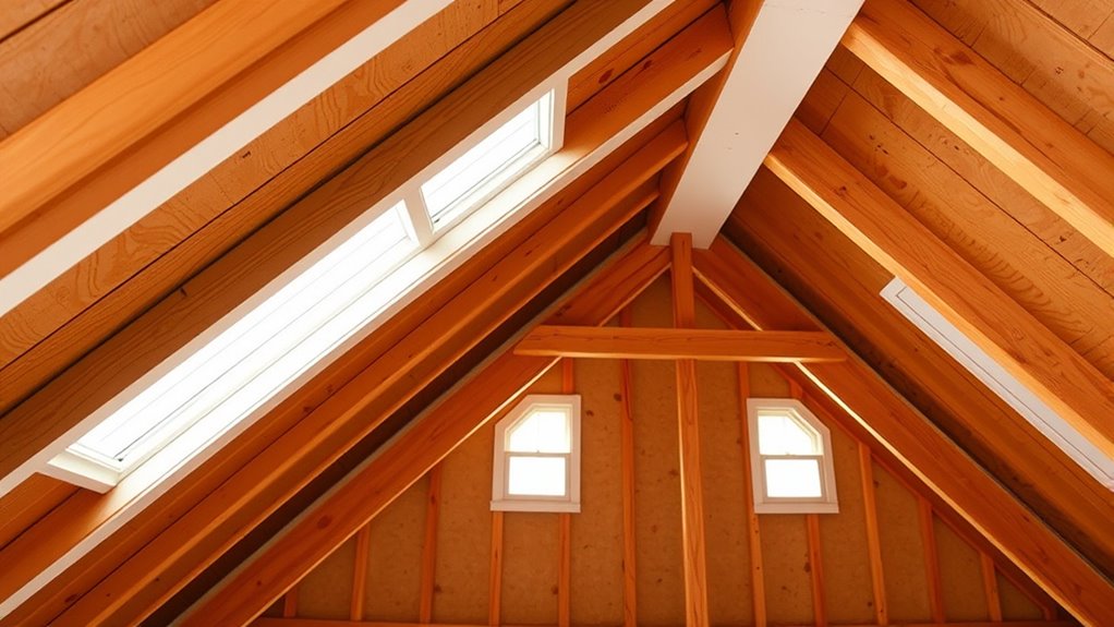 Proper attic ventilation is key to preventing mold and ice dams. Make sure you have good airflow by installing intake vents at the soffits and exhaust vents near the roof ridge. This continuous airflow helps regulate moisture and temperature levels in your attic, reducing condensation and melting snow on the roof. Using the right insulation alongside ventilation also keeps warm air out of your attic. Keep these tips in mind to protect your home—more guidance awaits to help you succeed.