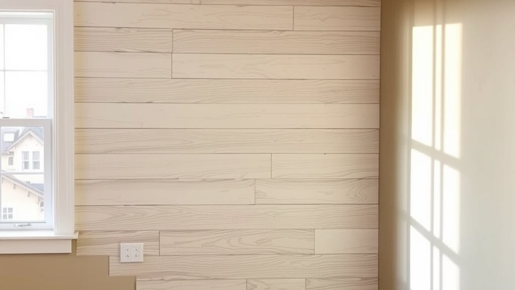 Sure, prepping the wall is a breeze—just your typical fun. Start with surface cleaning; wipe away dust and grease, because who wants dirt under their beautiful shiplap? Then, apply primer to guarantee paint or stain adheres perfectly. Skipping these steps? Well, that’s like trying to build a sandcastle on concrete. So, clean, prime, and get ready for a flawless, professional-looking accent wall you’ll love.