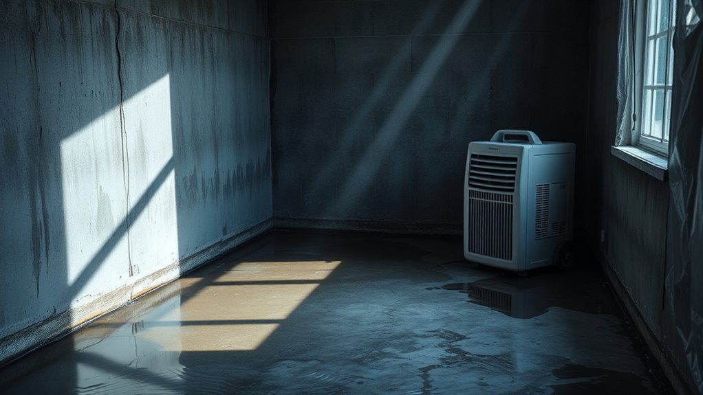 A damp or flooded basement can quickly lead to serious structural damage and mold growth if not addressed promptly. When moisture seeps into your basement, you might notice persistent basement odors that are difficult to eliminate. These odors often signal hidden moisture or mold, both of which can compromise your home’s integrity and your health. To prevent this, it’s vital to dry out your basement thoroughly and implement effective waterproofing measures.