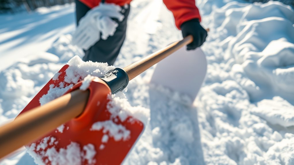 Think of snow shoveling as guiding a gentle river through winter’s icy landscape. With each smart move, you clear a path not just for your driveway, but for peace of mind and safety. Embrace these hacks as your trusted boat, steering smoothly through the storm. When you shovel wisely, you’re not just clearing snow—you’re carving a safe passage for yourself and loved ones to arrive home warm and secure, no matter how fierce winter gets.