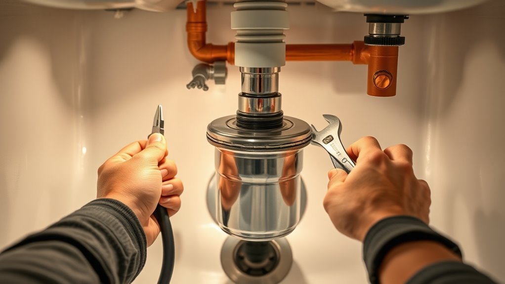 You’ll need a pipe wrench and screwdriver to install your garbage disposal. The pipe wrench helps loosen and tighten plumbing connections securely, ensuring a tight fit. The screwdriver is essential for removing and securing screws during the installation process. Additionally, you might need pliers, a drill, and plumber’s putty. Having these tools ready will make the installation smoother, allowing you to confidently complete the project yourself.