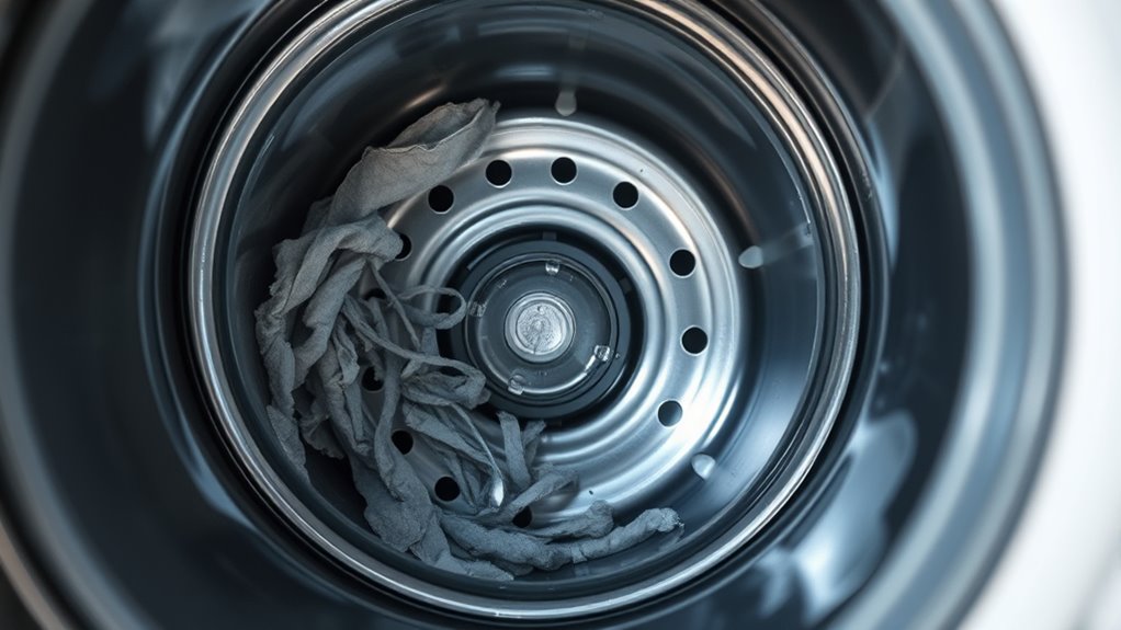 If your washing machine isn’t draining, start by unplugging the unit and detaching the drain hose. Check for clogs or obstructions by clearing out lint, debris, or small objects, and run water through the hose to make sure free flow. Clear any buildup in the drain pump or standpipe with a plumber’s snake if needed. Understanding these steps can quickly resolve most drainage issues—continue for detailed tips to get your washer draining properly again.