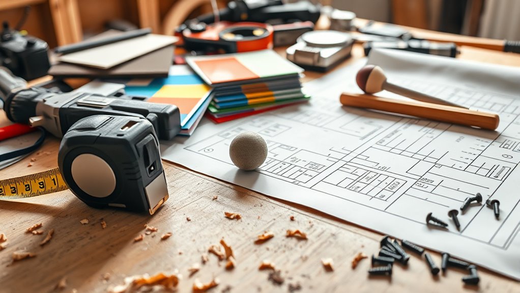 Essential tools like screwdrivers, drills, and levels are fundamental for any DIY project or professional renovation. A screwdriver allows you to fasten or remove screws easily, whether you’re assembling furniture or installing fixtures. Choose between flat-head and Phillips-head types based on your screws. A drill speeds up tasks like drilling holes or driving screws into tougher materials; cordless models offer portability. A level ensures your surfaces are perfectly horizontal or vertical, preventing crooked installations. Using a level when hanging shelves or installing cabinets guarantees everything lines up correctly. These tools form the backbone of most home improvement tasks, making projects safer, more accurate, and efficient. Investing in quality tools will save you time and effort while helping you achieve professional-looking results.
