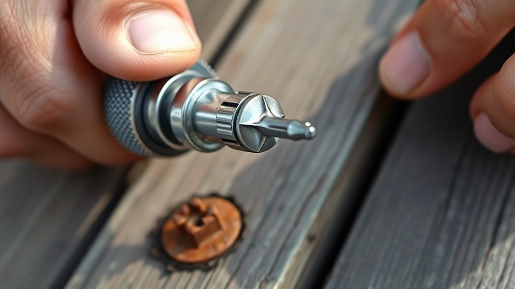 If you encounter a stripped screw, choosing the right repair method is essential to prevent further damage and guarantee successful removal. First, assess how badly the screw is stripped. For minor damage, try using a rubber band or steel wool between the screwdriver and screw to improve grip. If that doesn’t work, opt for rubber band tricks or a screw extractor kit. For heavily stripped screws, drilling a small pilot hole into the screw head can help you remove it with pliers or a screw extractor. Sometimes, using locking pliers to grip and turn the screw is effective. Avoid forceful attempts that could worsen the damage. Selecting the appropriate method based on the screw’s condition saves time and preserves your materials.