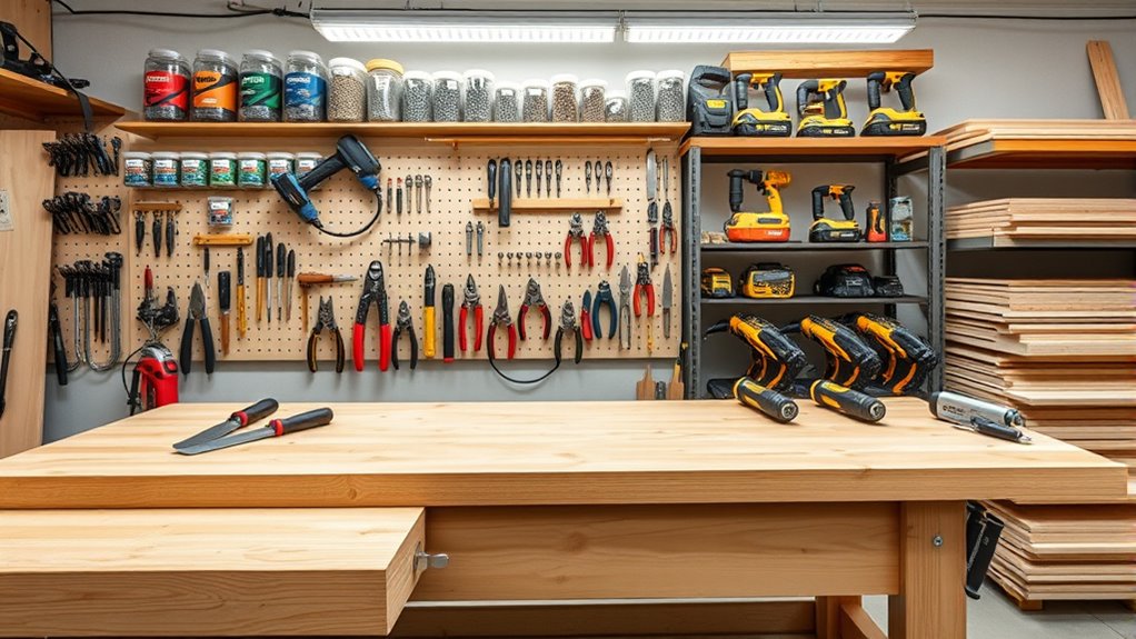 Finally, plan your layout with flow in mind. Create clear pathways that allow you to move freely between different zones — storage, workbenches, and equipment. This thoughtful setup improves your workspace ergonomics and overall efficiency. Remember, a well-organized workshop isn’t just about storage; it’s about designing an environment that supports your work comfortably and efficiently. When you prioritize tool storage and workspace ergonomics, you’ll notice your projects become more enjoyable and less frustrating. With a little effort upfront, your workshop will become a place where productivity and comfort go hand in hand.