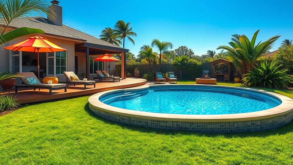 Your budget plays a crucial role in choosing the right above ground pool, as prices can vary widely—from under $200 to over $3,000. It’s important to determine how much you’re willing to spend upfront and consider additional costs like pumps, filters, ladders, and covers, which can add considerably to the total. Think about long-term value by evaluating the durability and material quality of the pool—this guarantees your investment lasts multiple seasons. Don’t forget to set aside funds for maintenance supplies like cleaning kits and chemicals, which keep your pool in top condition. Be aware of hidden costs such as installation services or permits that may come up. Carefully considering these factors helps you select a pool that fits your budget while providing enjoyment for years to come.