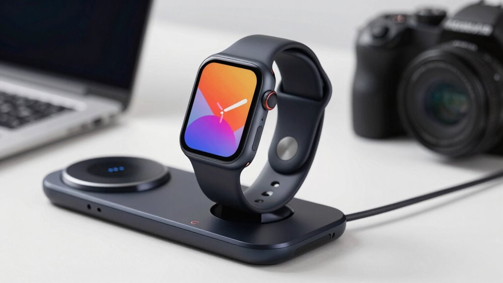 When choosing a charging stand for your Apple Watch, I consider several key factors to guarantee it meets my needs. Compatibility with my watch model, charging speed, and safety features are top priorities, along with how easy it is to use and carry around. Let’s look at what you should keep in mind to find the best fit for your lifestyle.