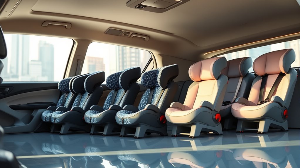 Choosing a convertible car seat with a load leg isn’t just about safety; comfort features play a significant role in ensuring a smooth ride for your child. Many models offer adjustable footrests, so they grow with your little one and stay comfortable on long trips. Plush padding and multiple recline positions help improve ride quality and accommodate different ages and preferences. Some seats even include sensory and calming features like integrated lights and sounds to soothe infants and toddlers. Removable head and body supports allow for customized comfort and easy cleaning as your child grows. Ergonomic designs with ample padding and adjustable components help guarantee proper positioning, reducing pressure points and making every ride more comfortable for your child.