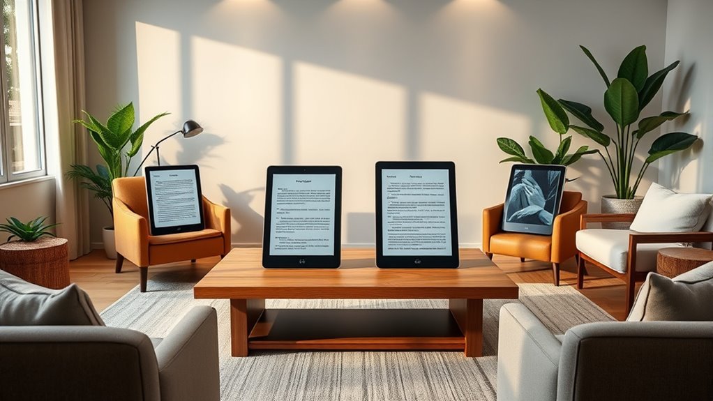 If you’re looking for the best large-screen e-readers in 2026, I’ve got you covered. From ultra-light, durable devices with high-resolution, glare-free displays to waterproof models with stylus support and extensive storage, there’s something for every reader. Many feature adjustable lighting, long battery life, and ecosystem compatibility, making them versatile for different needs. Keep going, and you’ll discover which models stand out and how to choose the perfect one for you.