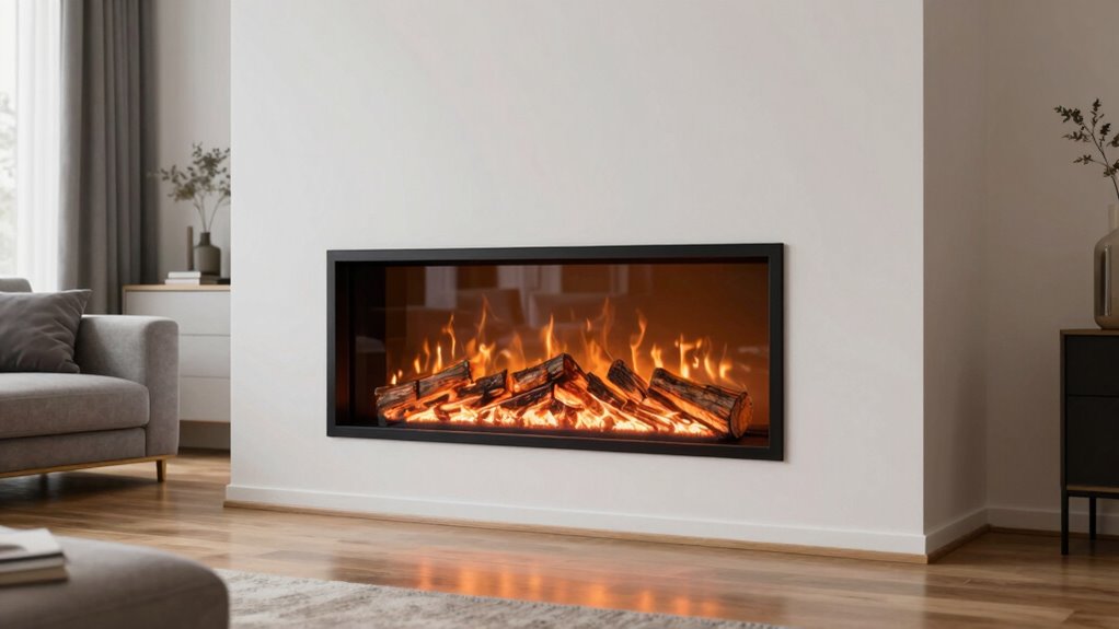 No, electric fireplaces are generally very quiet during operation. I’ve found that most models use fans or infrared elements that produce minimal noise, often just a gentle hum or whisper-like sound. High-quality units tend to operate even more quietly, making them perfect for bedrooms or living rooms where peace and comfort matter. If noise is a concern, I recommend checking customer reviews for specific models to guarantee quiet performance.