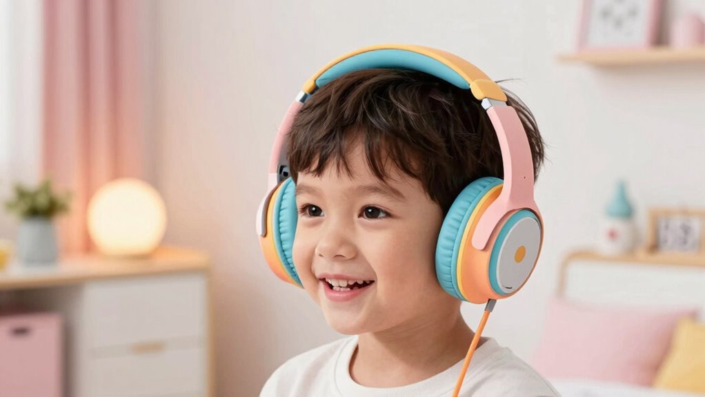 Selecting headphones that fit well and are easy for kids to operate is key to guaranteeing safe and enjoyable listening experiences. Age-appropriate designs feature adjustable headbands and the right size for different age groups, providing a secure fit without discomfort. Devices made for children often have simplified controls, making it easy for kids to use independently and safely. Volume limiting features should be tailored to their age, with a recommended maximum of 85dB for children under 12, protecting their hearing. Additionally, the materials used should be soft and hypoallergenic, reducing the risk of irritation or allergic reactions. Safety standards like CPC and CPSIA ensure these headphones are free from toxic substances, giving parents peace of mind while kids enjoy their favorite tunes safely.