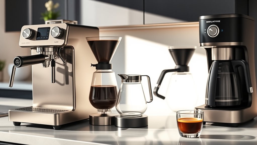 Choosing the perfect high-end coffee maker is like finding a trusted barista at home—each option offers a unique touch of craftsmanship. Remember, it’s not just about brewing coffee, but creating moments of indulgence. So, why settle for less? Elevate your mornings with a machine that transforms ordinary beans into extraordinary experiences. After all, isn’t life too short for anything less than exceptional coffee? Your perfect brew awaits—are you ready to take the leap?