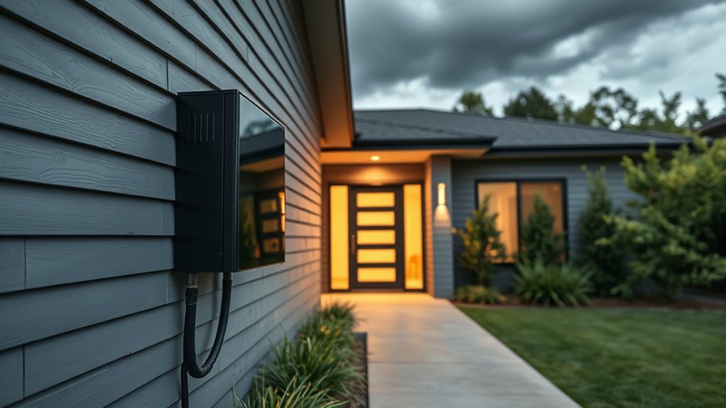 Ensuring safety and protection features are integral to choosing a reliable home battery backup system. A good system includes a Battery Management System (BMS) that prevents overcharging, overheating, and short circuits, keeping operation safe. Using pure sine wave inverters is essential for protecting sensitive electronics from power surges and voltage fluctuations. Safety features like automatic shutdown, overload protection, and thermal regulation help avoid damage to the system and connected devices. Certifications from organizations such as UL or CE indicate the system meets strict safety and quality standards. Additionally, proper ventilation and cooling mechanisms are necessary to prevent overheating, ensuring the system operates safely over the long term. Prioritizing these features guarantees a safer, more reliable backup during power outages.