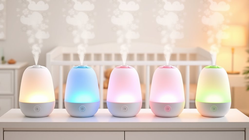 Choosing the right humidifier for your baby’s room is like finding the perfect lullaby—calming and essential. With options that add soft night lights and gentle mist, you can create a cozy, comfortable space that helps your little one sleep soundly. Just remember to contemplate size, features, and ease of cleaning. After all, a happy, healthy baby starts with a room as soothing as a gentle breeze on a warm day.