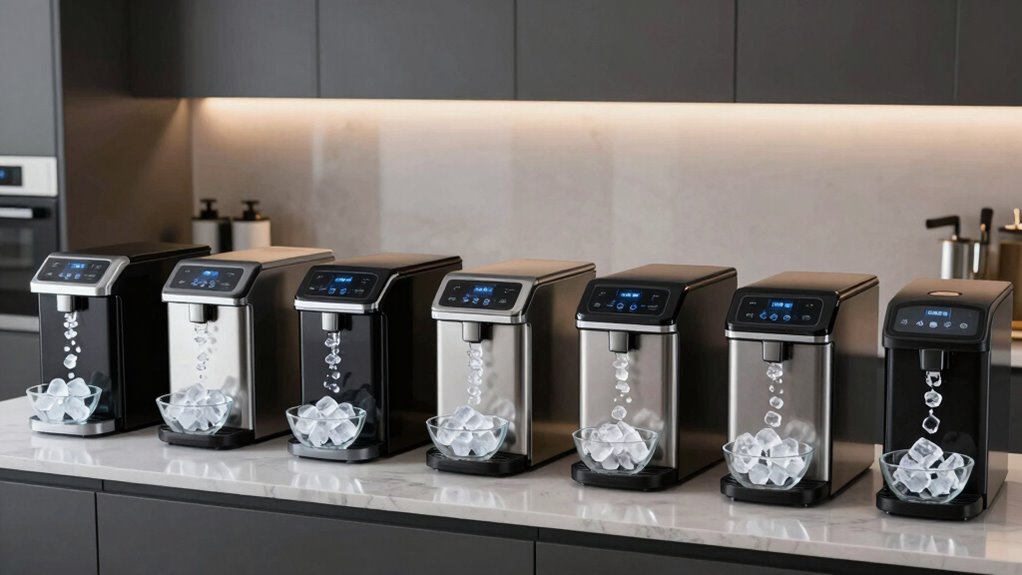 Have you thought about the type of ice that best suits your needs? Different ice makers produce various types of ice, like nugget, cube, or flake, each suited for specific uses. Nugget or chewable ice is perfect for smoothies and cocktails because it’s soft and crushable. Cube-shaped ice is preferred for beverages like whiskey or mixed drinks that benefit from slow melting and presentation. Flake or crushed ice is great for food presentation or quickly cooling food items, especially in restaurants. Your choice depends on how you’ll use the ice—whether for drinking, food preservation, or presentation. Picking the right type assure your machine meets your needs and enhances your experience, so think about your primary use before making a decision.