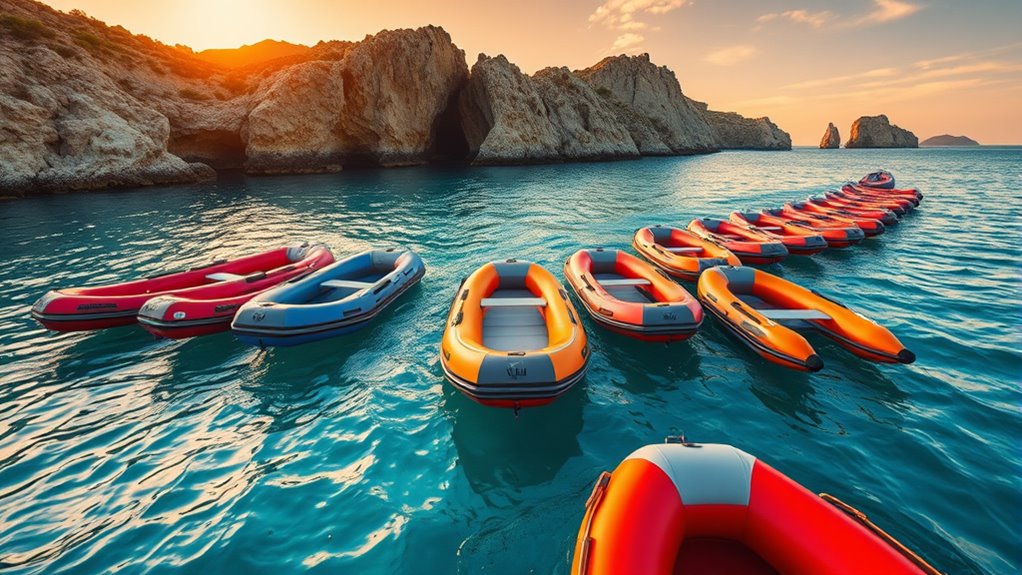 If you’re looking for the best inflatable boats of 2025 for adventure and durability, I’ve explored top models like Intex Explorer, Excursion series, Sea Eagle, and BRIS inflatable kayaks. These boats feature strong PVC construction, safety features like multiple air chambers, and versatile designs for lakes, rivers, or casual outings. They’re lightweight, portable, and easy to set up. Keep going to discover detailed insights on how each model fits your water adventure needs.