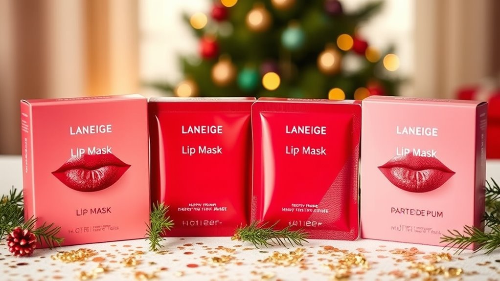 If you’re looking for the best Laneige lip mask holiday sets to keep your lips hydrated this season, I’ve got you covered! I recommend the 6 PCS Bee Lip Balm and Mask Set for variety, the 12 Pack Lip Sleeping Mask Set for intense nourishment, the KIMUSE 4PCS Overnight Treatment for reliable hydration, and the limited edition TONYMOLY Duo for a fun twist. Stay tuned, because there’s even more to discover about choosing the perfect set for you!