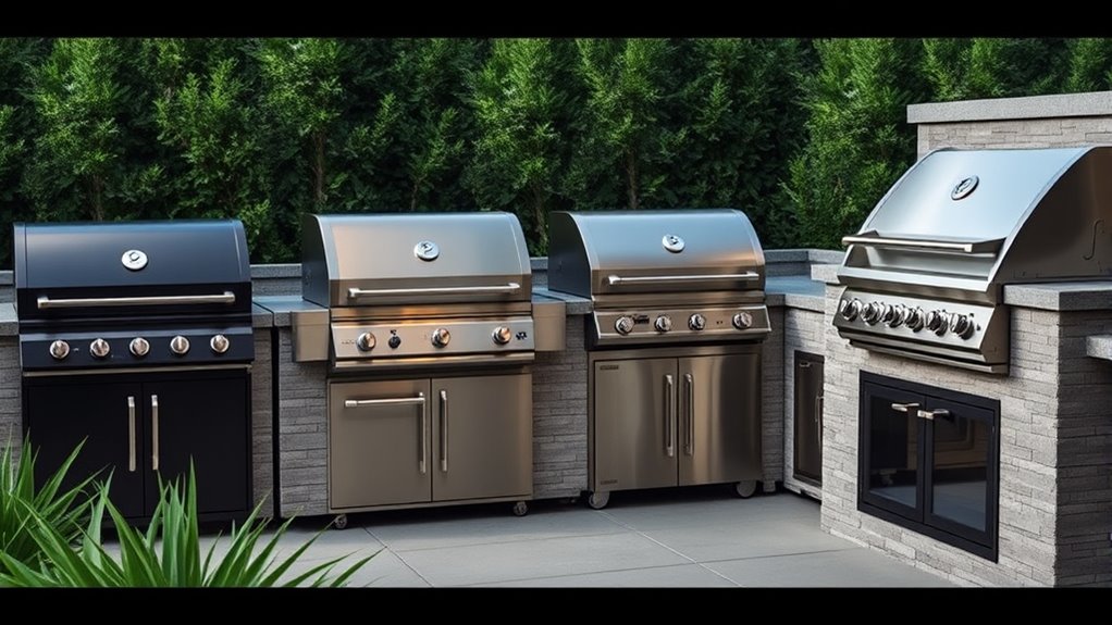 If you’re searching for the best luxury outdoor grills in 2026, I’ve got you covered. These top-tier models blend sleek design with impressive power, featuring high BTU ratings, durable stainless steel construction, and versatile cooking options. From built-in island setups to portable units with extra features, these grills elevate any outdoor space. Keep exploring to discover the perfect combination of elegance and performance tailored for your backyard culinary dreams.