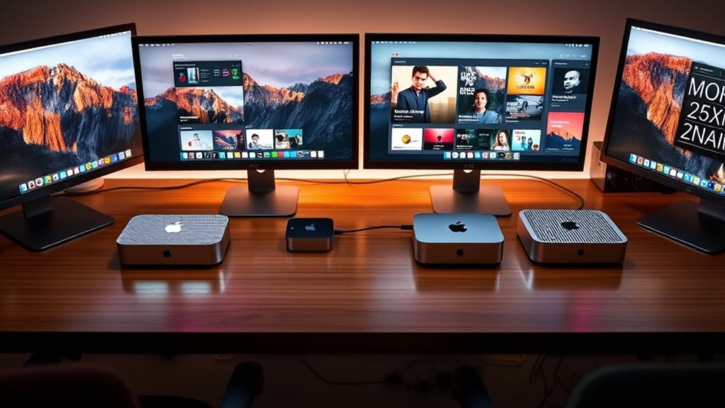 If you’re looking to transform your media setup, choosing the right Mac mini makes all the difference. For instance, I know a friend who upgraded to the M4 Pro model, and now their media library streams seamlessly across multiple devices. Whether you prioritize power or value, selecting the ideal Mac mini guarantees smooth performance and future-proofing. I recommend weighing your needs carefully—your perfect media server is just a decision away.