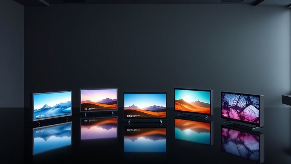 Smart TV functionalities play an essential role in enhancing your overall viewing experience, making it easier to access and enjoy your favorite content. Integrated operating systems like Fire TV, Google TV, or Roku provide a wide range of streaming apps and services, so you’re never limited in what you can watch. Voice control compatibility with Alexa, Google Assistant, or built-in voice recognition simplifies navigation and content searches, saving you time. Centralized interfaces offer quick access to your favorite apps, live TV, and personalized recommendations, keeping everything at your fingertips. Connectivity options like Wi-Fi 6E, Bluetooth, and multiple HDMI ports ensure seamless device pairing and smart home integration. Advanced features such as AI-driven content optimization and smart home compatibility add convenience and future-proof your viewing setup.