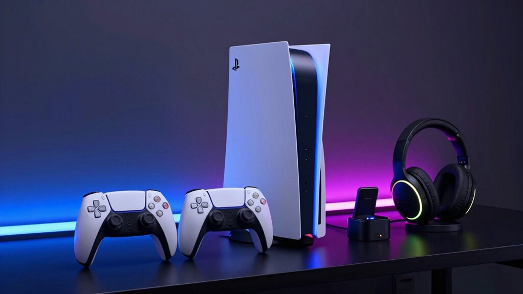You can personalize your PS5 setup by choosing accessories that reflect your style and enhance your experience. I recommend customizing your controller with unique skins or grips, adding ambient lighting to set the mood, and selecting a stylish headset that matches your gaming theme. You might also incorporate decorative shelves or posters around your console. These touches make your gaming space truly yours, creating a more immersive and enjoyable environment.