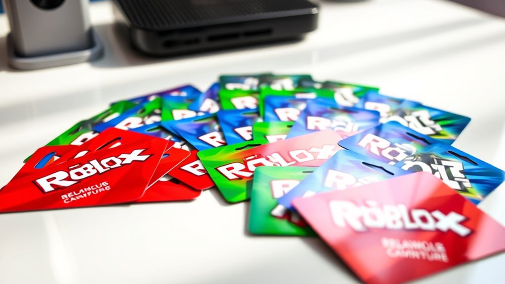 After ensuring the gift card’s platform compatibility, I always look for those enticing bonus Robux offers. Many Roblox gift cards provide up to 25% extra Robux when redeemed, which can notably boost the virtual currency I receive. I’ve noticed that the bonus percentages vary based on the amount I purchase, with larger denominations often giving higher rates. By taking advantage of these bonus offers, I can enhance my avatar’s customization, access more features, and elevate my overall gameplay experience. Some gift cards even include exclusive virtual items, adding extra value. Understanding these bonus Robux percentages and conditions helps me maximize my virtual currency, ensuring I get the most bang for my buck while diving into the Roblox universe.
