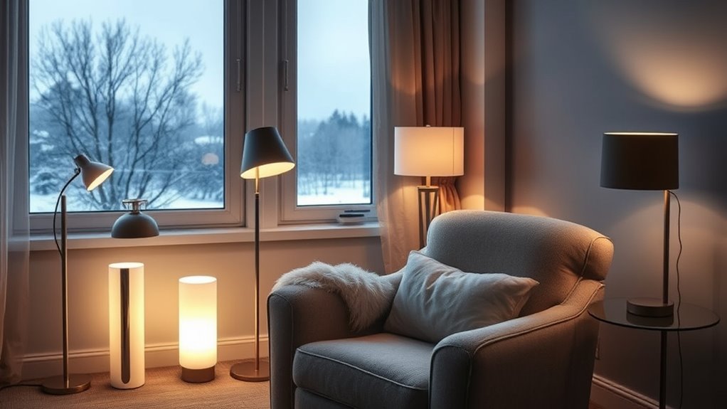 Understanding the light spectrum type is essential for finding the right SAD lamp to combat winter blues effectively. I’ve found that full-spectrum white light, typically around 5,500 to 6,500 Kelvin, closely mimics natural sunlight and is highly effective for SAD therapy. It helps regulate mood and boosts energy levels during those gloomy winter months. On the other hand, blue light therapy lamps emit concentrated blue wavelengths, which can enhance alertness and influence circadian rhythms, but I’ve learned they may come with certain safety considerations. When choosing a lamp, I consider my personal sensitivity and specific health goals. Consulting with a healthcare professional can also provide valuable insights into which light spectrum will work best for me.