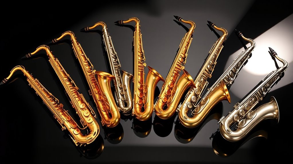 Have you ever wondered how a saxophone’s key, size, and design influence its sound and tone range? These factors directly impact the instrument’s ability to produce low, mid, and high notes effectively. A wider tone range allows for more versatility, from deep, mellow sounds to bright, piercing tones. The quality of reeds, mouthpiece, and overall build also play vital roles in the sound’s richness and clarity across the spectrum. Saxophones with advanced key mechanisms and precise intonation help maintain consistent sound quality throughout all pitches. Understanding these tonal capabilities guarantees the instrument can meet the expressive demands of various musical styles and performance settings. Ultimately, selecting a saxophone with the right sound and tone range helps you achieve your desired musical expression.