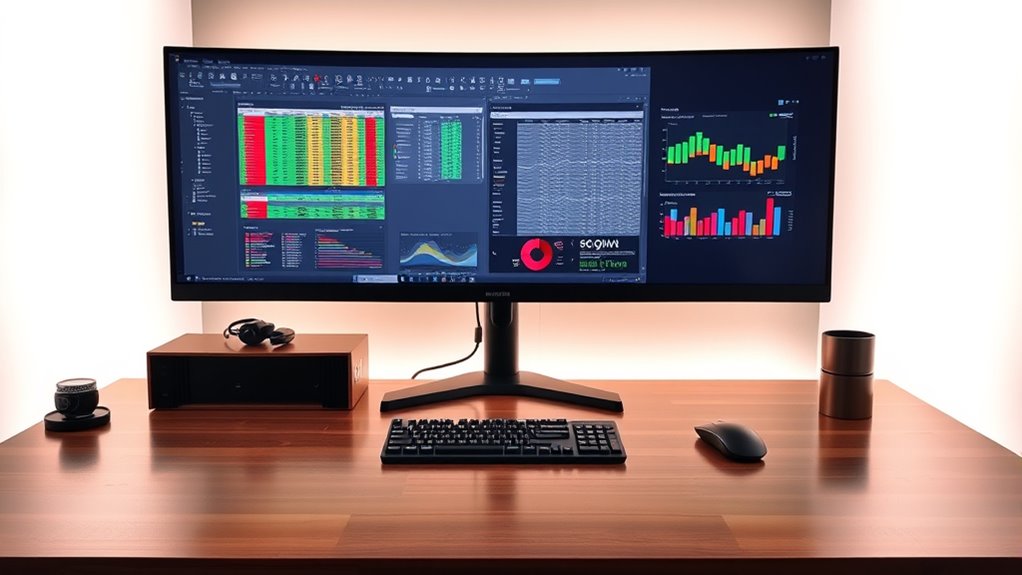 Choosing the right ultrawide monitor is like finding the perfect canvas for your creativity—broad, immersive, and tailored to your needs. Whether you’re gaming, working, or multitasking, these options expand your horizon and boost productivity. Just imagine your workspace as a vibrant city skyline, where each monitor is a building, shaping your environment into a dynamic, efficient hub. Pick the one that best fits your skyline, and watch your productivity soar.