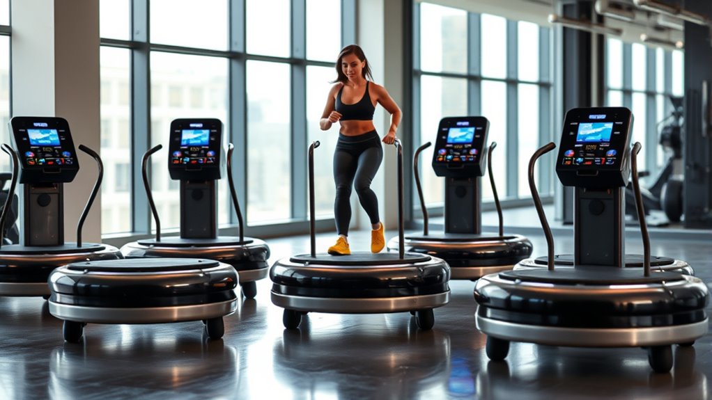 If you’re looking to upgrade your workouts, I recommend exploring the 15 best vibration exercise machines that can boost muscle activation, improve circulation, and save time. These machines offer adjustable speeds, multiple modes, Bluetooth connectivity, and sturdy designs suitable for different fitness levels. Whether you want fuller body routines or targeted exercises, there’s a model to match your needs. Keep going, and you’ll discover all the features that can transform your fitness journey.