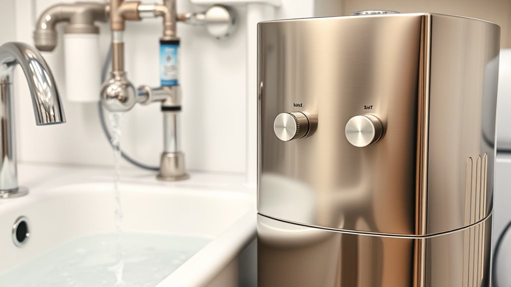 Maintenance frequency varies by model, but I typically check my water softener every 4 to 6 weeks. Some models have digital displays that alert me when regeneration is needed, while others require manual monitoring. I always clean the brine tank annually and replace filters as recommended. Regular upkeep guarantees my system runs efficiently, providing soft water consistently without interruptions. Staying on top of maintenance keeps my softener functioning perfectly.
