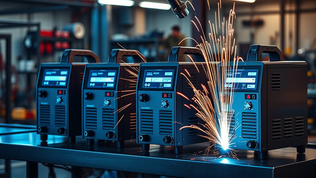 If you’re looking for the 14 best welding machines of 2026, I recommend options that offer versatility, portability, and safety, like multi-process units such as the YESWELDER 160A 4-in-1 or ARCCAPTAIN 135A. These models support MIG, TIG, and ARC welding, making them suitable for various projects. Many feature digital displays and safety protections, perfect for beginners and pros alike. Keep exploring to discover which machine fits your needs best and release new welding potential.